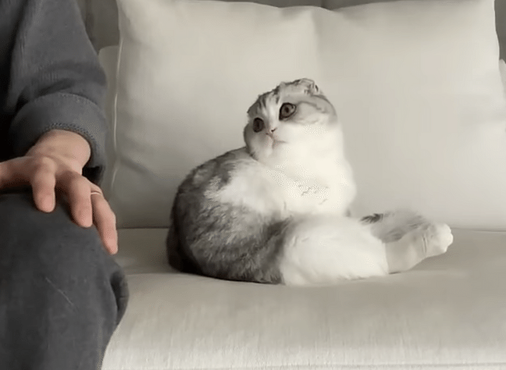 飼い主さんがMuuくんをツンツン。