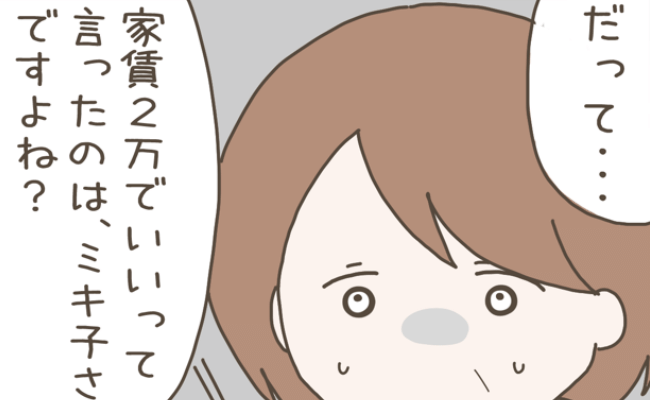 すると、「だって、家賃は2万円でいいって言ったのは、ミキ子さんですよね?」と言われました。