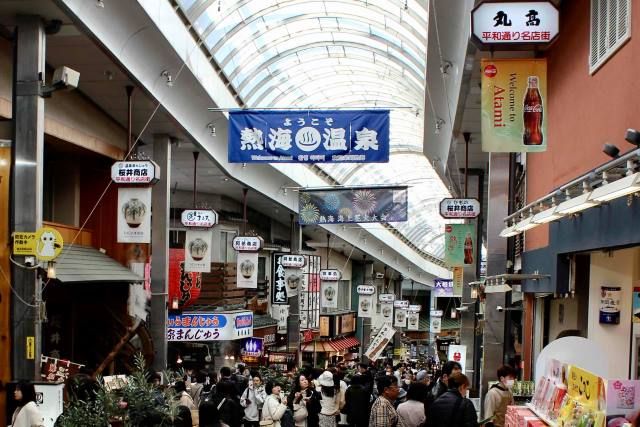熱海駅前には「平和通り」と「仲見世」、2つの昭和レトロな商店街があり、歴史ある老舗店が多数あります。食堂、寿司店、干物屋、おみやげ屋さんも勢揃い。ただ眺めているだけでも楽しく、おやつの食べ歩きもまた格別です。