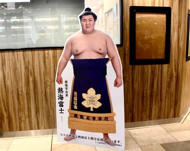 近くに立っている熱海出身のヒーロー、熱海富士関とツーショットを撮るのも熱海の思い出におすすめです。将来、横綱になるかもしれません。