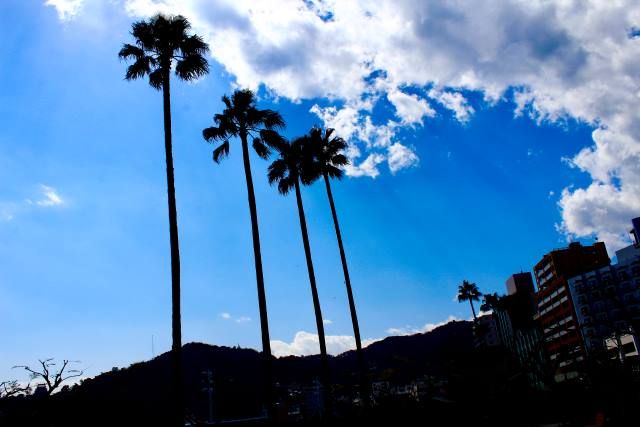 ジャカランダが咲くのは、5月下旬から6月。ブドウの房状に50以上のブルーの花が両脇に咲く風景は壮観。ほかにも季節になると、桜やブーゲンビリアが咲き乱れる熱海の町、いっそう華やかになり散策も楽しい時期です。