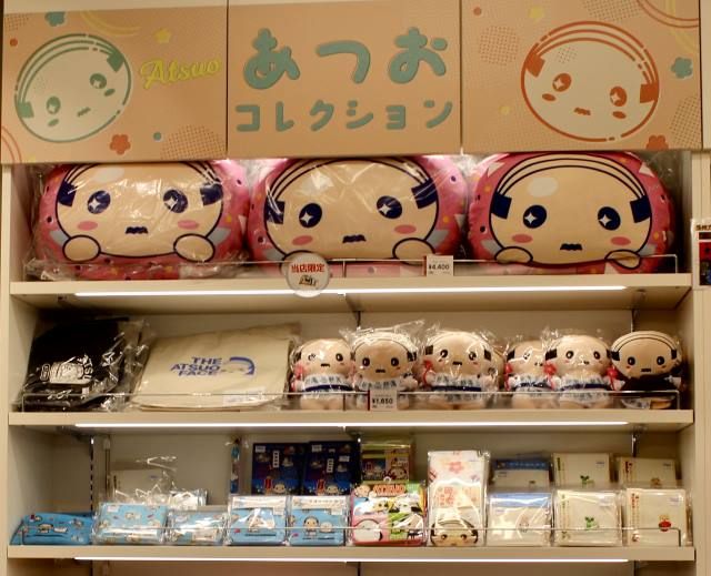 熱海市内で生産加工された熱海ならではの商品87アイテムには、ATAMI COLLECTION A-PLUSのマークがついており、熱海公認の商品が集まっています。さらに、熱海のゆるキャラ、「あつお」グッズが至ることろに。キモ可愛さについ買ってしまう人も多い熱海ならではのお土産です。