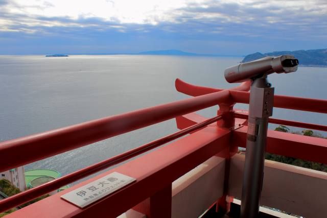 意外と侮れないのが、観光目的に建てられた熱海城。錦ヶ浦の山頂にあり、海抜160m、地上から43mの天守閣展望台からは、熱海市街をはじめ初島や大島、伊豆半島など360度の大パノラマが広がり絶好のフォトスポット。