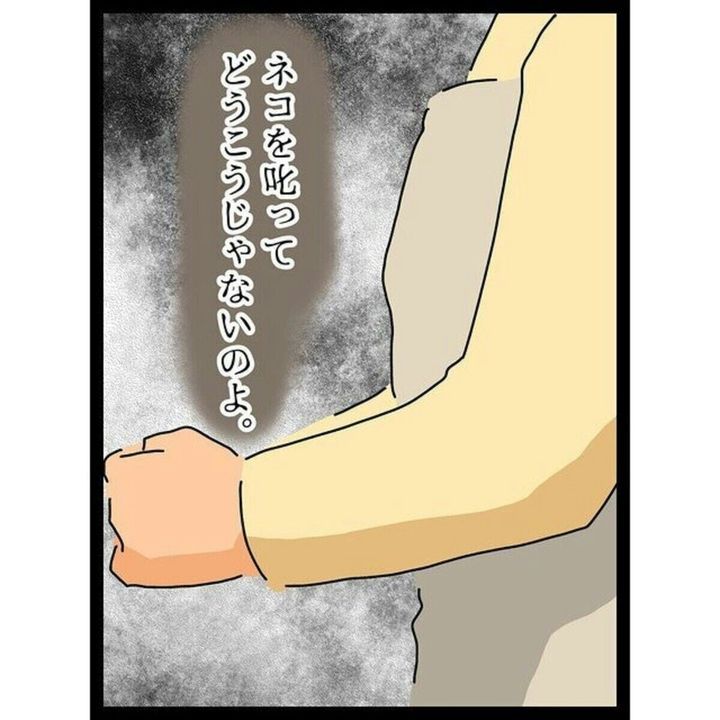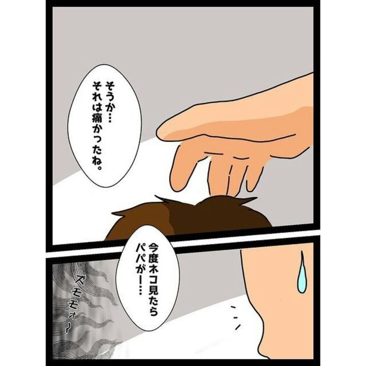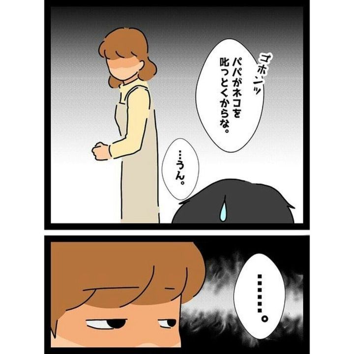 長男が猫に怪我をさせられたことを知った夫。夫は、落ち込んでいる子どもに「パパが猫を叱っておく」と声かけをします。