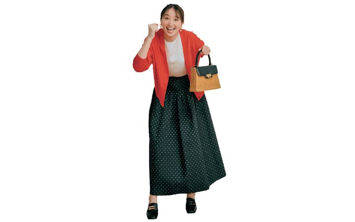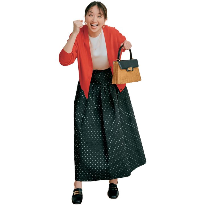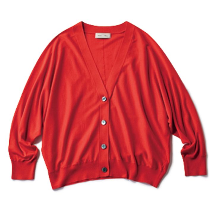 着こなしにメリハリを出すエネルギッシュなトマトレッド。甘く転ばないのが◎。カーディガン¥42,900(エブール フォー ロンハーマン/ロンハーマン)