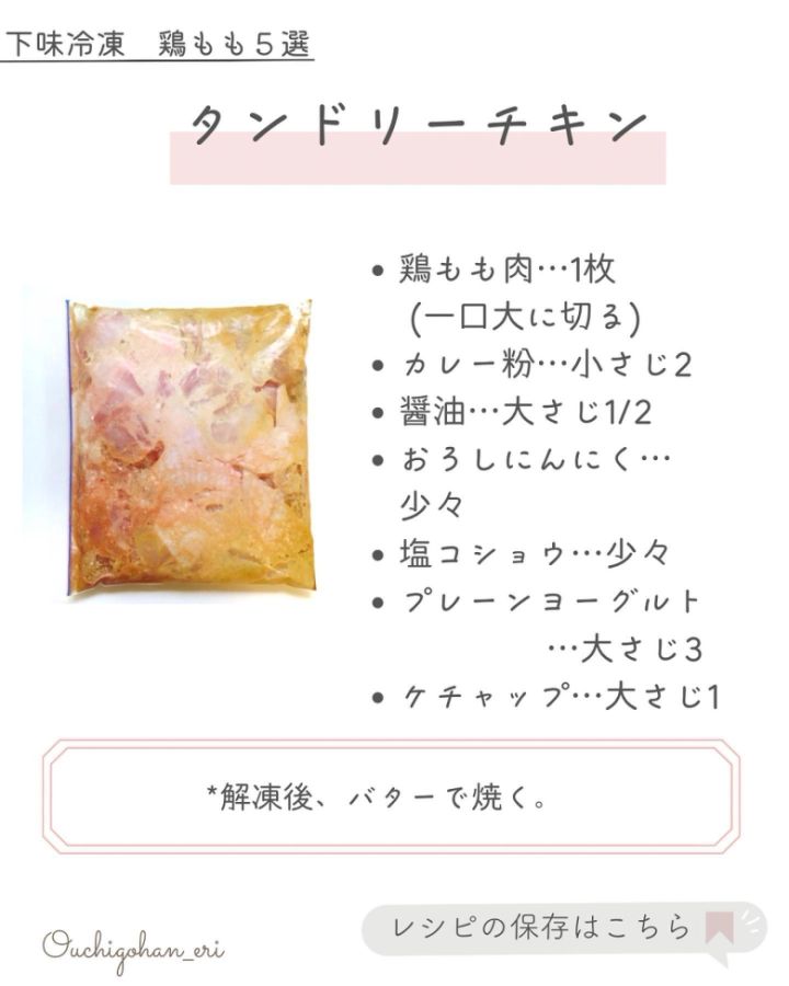 【タンドリーチキン】夕飯のメインに!温めるだけの冷凍作り置きおかずレシピ