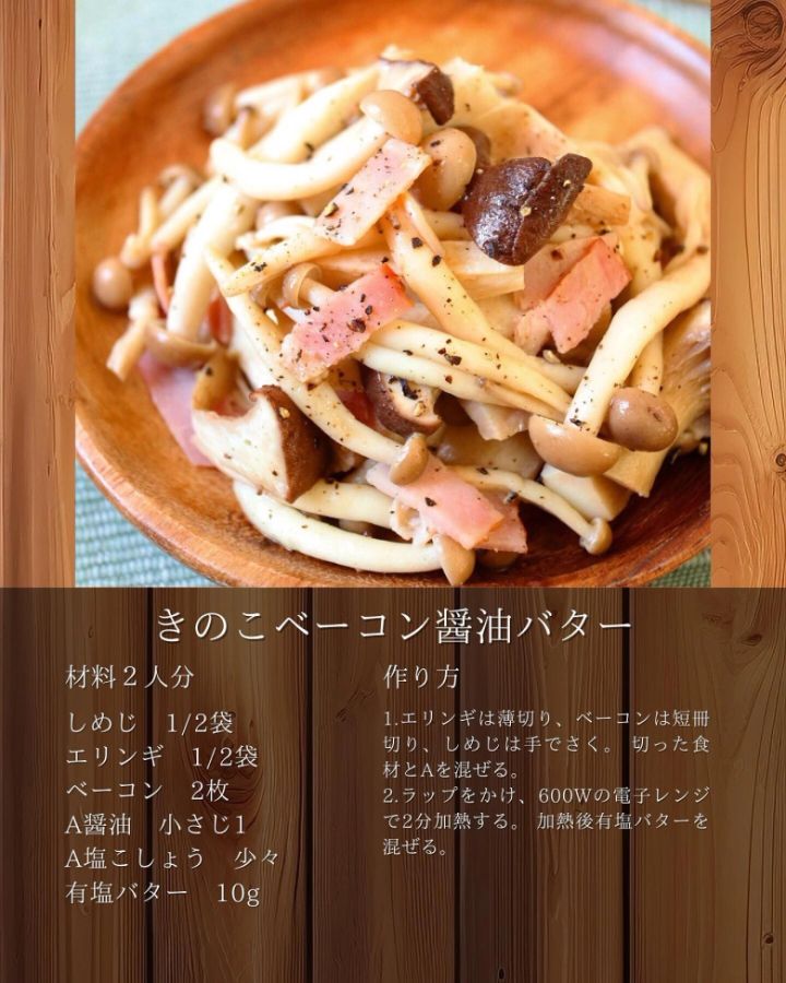 【きのこベーコンのしょうゆバター】お弁当にも!温めるだけの冷凍作り置きおかずレシピ
