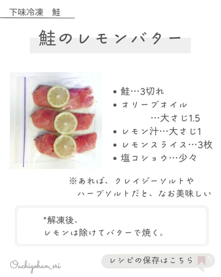 【鮭のレモンバター】お弁当にも!温めるだけの冷凍作り置きおかずレシピ