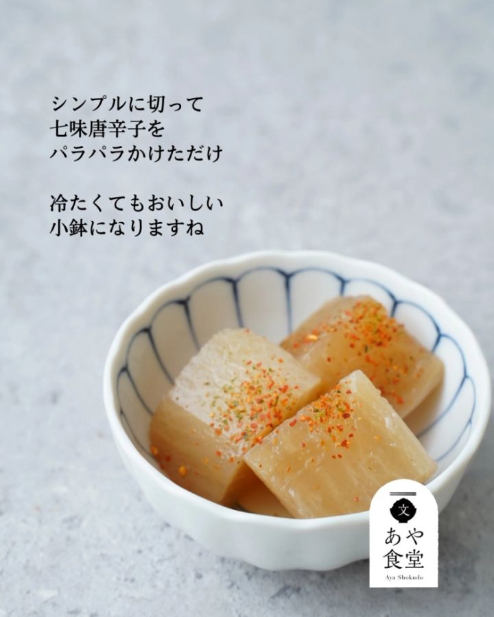 冷凍しているうちに、味が染み込んだ大根の煮物が完成するレシピです。大根を鍋で解凍して鶏肉や厚揚げをプラスすると副菜から主菜に変身しますよ。冷蔵庫での解凍でも大丈夫ですが、鍋で弱火からゆっくり解凍するとより味が染み込みます。