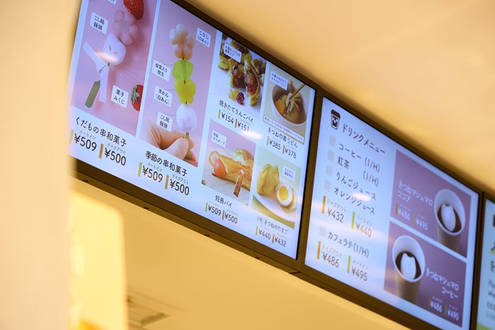 お稲荷さんにお仕えするキツネをモチーフにしたマシュマロ入りのドリンクや、お供えものとして知られる油揚げを使った軽食など、伏見稲荷大社に関連するものをかわいく取り入れた商品がラインアップ。