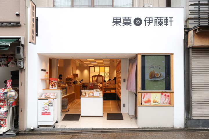 「果菓 伊藤軒 伏見稲荷店(かか いとうけん ふしみいなりみせ)」があるのは、京阪伏見稲荷駅から参道に入ってすぐの場所。元治元年(1864)年に京都で創業し、時代に合わせた多彩な和菓子ショップやカフェを展開する「伊藤軒」の新業態です。