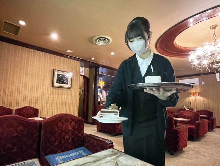 シャンデリアとステンドグラス、赤いビロード張りの椅子が印象的な「館」の喫茶室は、開業以来90年近くにわたり多くの地元の人たちの憩いと交流の場となってきました。