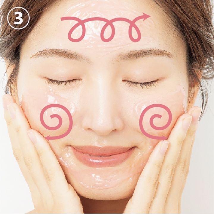 ③10~15分放置後、濡れた手でジェルをやさしくなじませます。※ザラつきが気になる部位(小鼻やアゴ先)を最後にクルクルとなじませてください。