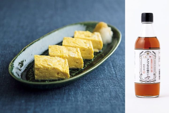 「卵にこのだしとみりん、水を入れて焼くだけで、お店に負けないふわふわプルプルのだし巻き卵に。忙しい朝でも手軽に作れて、ほっとした気持ちになれる大事な一本です」360mL ¥1,188/アコメヤ トウキョウ