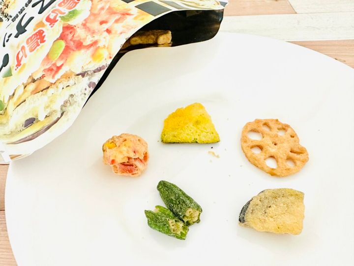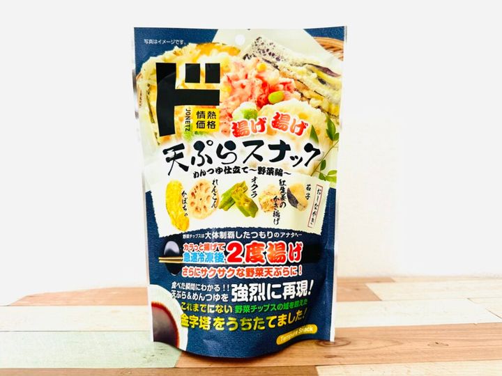 野菜そのものを揚げてから急速冷凍し、その後さらに2度も揚げてカリカリにしているそうで、かなり手間のかかったひと品。めんつゆ味のおやつというより、むしろ、カップうどん付属の天ぷらに近いかも! 1袋130g入りでこの価格は、一般的な野菜チップス類と比べたらずいぶんと高級感があるのですが、かき揚げ天ぷらを買ったと思えばなんとなく納得です。