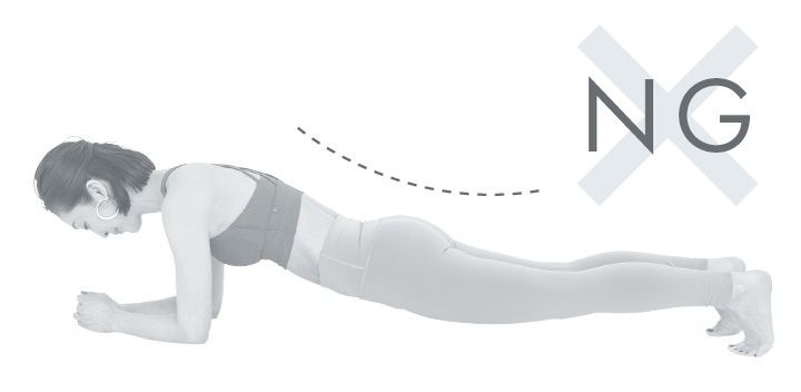 お腹の力が抜けてしまうと、腰が反りやすくなり、腰への負担がかかるので要注意。腹直筋にしっかり意識を向けよう。