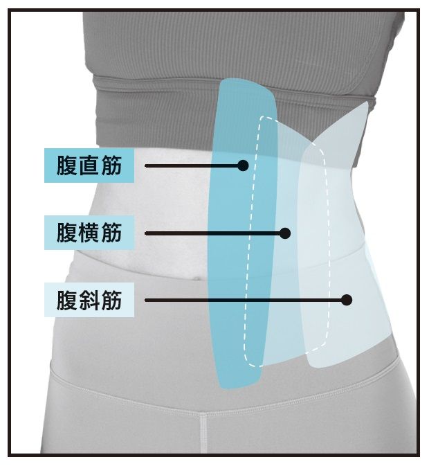 お腹の真ん中を走る腹直筋、その奥の深層部にある腹横筋、肋骨から骨盤にかけて斜め方向に走る腹斜筋。これらの筋肉が美くびれ作りのカギを握る。