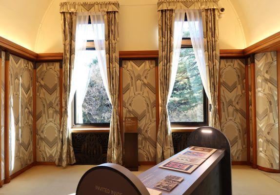 実は、旧朝香宮邸には謎が残る箇所がいくつも存在するとか。不思議な形をした壁の穴、鍵がなく開かない扉。 この書庫にも開かずの戸棚があるそうです…。