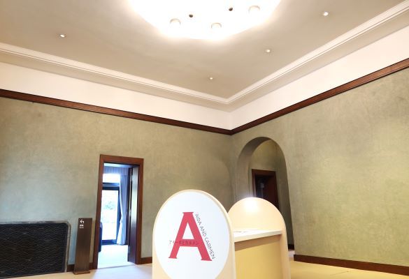 "U" UNEVEN HARMONY 大広間の空間のリズム、"Q" QUADRUPLE CREATIVITY 4人のアーティストの美術作品 大客室