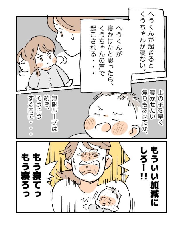 上の子を早く寝かせたい焦りもあってか、無限ループは続き、そうこうする内に・・