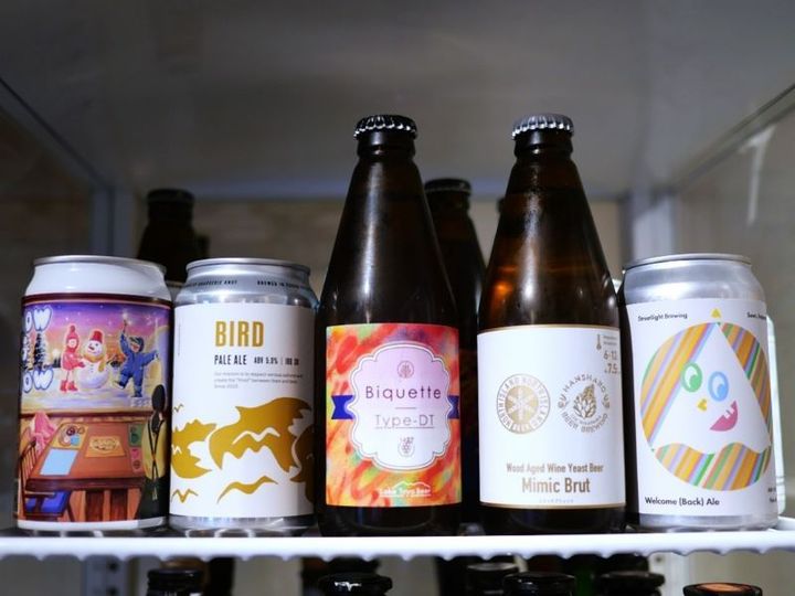 お酒専用の冷蔵庫を見てみると、クラフトビール・日本酒が所狭しと並んでおります。