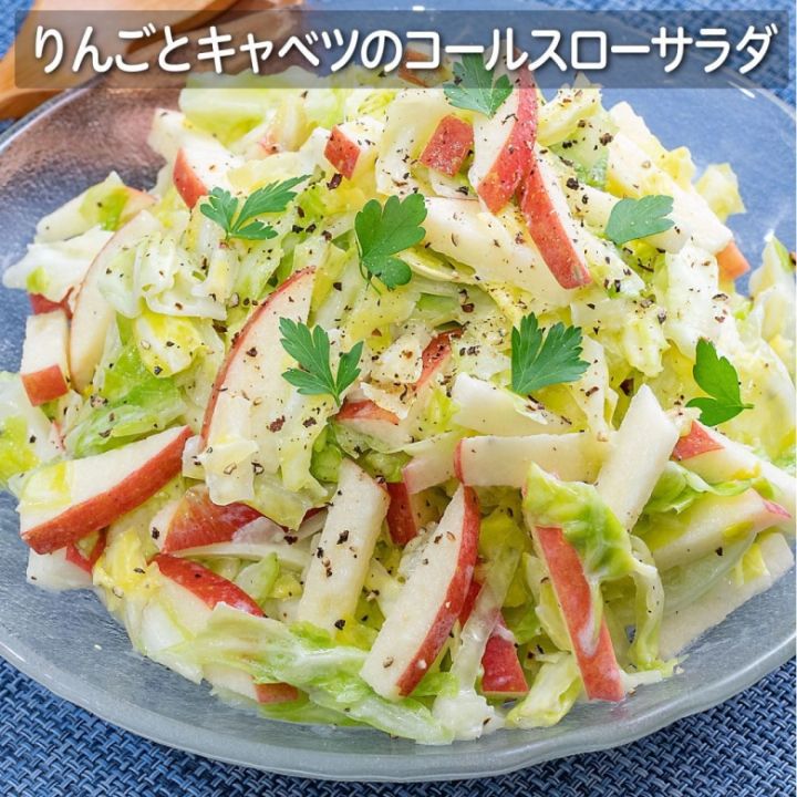 唐揚げの副菜に、キャベツとりんごのコールスローサラダはいかがでしょうか♪塩もみしたキャベツと細切りにしたリンゴに、マヨネーズ、オリーブオイル、酢などを混ぜ合わせたドレッシングを和えたサラダ。キャベツとリンゴの食感も楽しくフルーティーな味わいです。