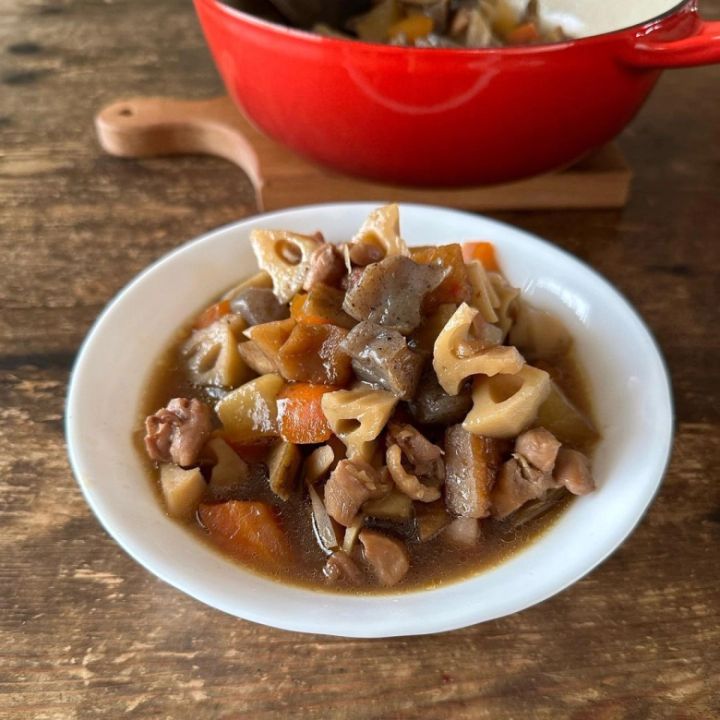 ゴロっとした根菜と出汁の旨味がたまらない定番の筑前煮。出汁が染み込んだ甘辛味の煮物は、唐揚げとも相性抜群。筑前煮を煮込んでいる間に唐揚げを揚げれば、同時にアツアツの夕飯が食べられますよ♪