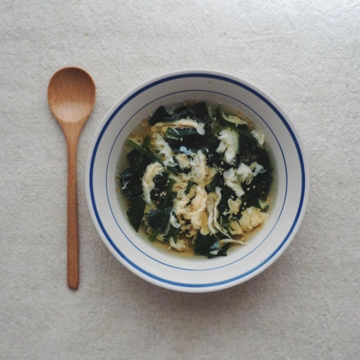 ふんわり卵とほうれん草がたっぷり入った中華スープ。しっかりした味付けの唐揚げには、優しい味わいの中華スープがぴったりです。