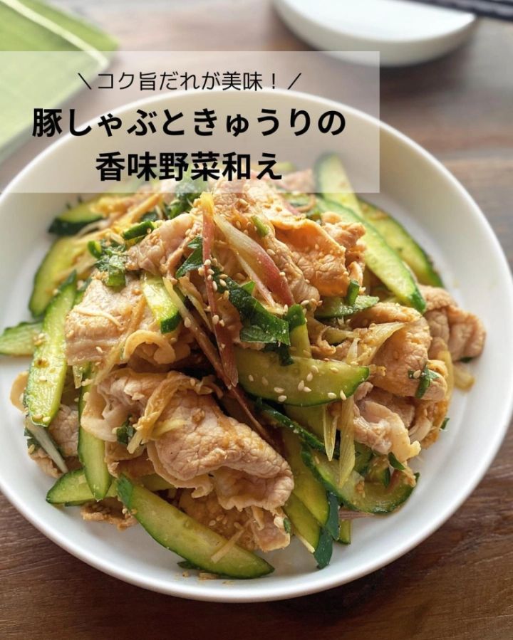 茹でた薄切りの豚肉に、きゅうりやミョウガ、大葉を合わせたさっぱりおかず。おうちの冷蔵庫に余りがちな焼き肉のタレに酢やごまを加えれば、簡単に激うまなタレが作れちゃいます♪野菜を多めにすれば、唐揚げにもぴったりなサラダになりますよ。