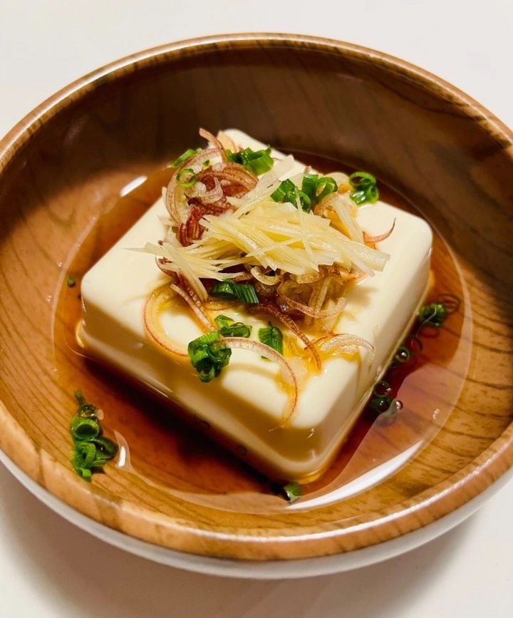 簡単副菜の定番といえば冷奴。さっぱりしているので唐揚げの副菜にぴったりです。薬味たっぷりにすれば風味もグッとアップします。トッピングの生姜を千切りにすることでシャキシャキの食感も味わえますよ。