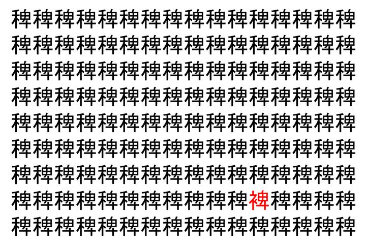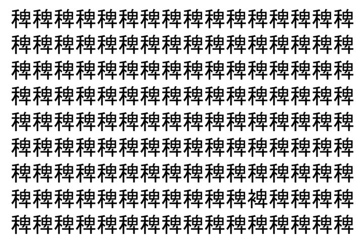 【脳トレ】「稗」の中に紛れて1つ違う文字がある!?あなたは何秒で探し出せるかな??【違う文字を探せ!】