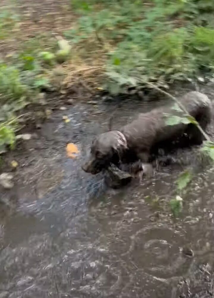 2. ラブラドール大きな水たまりを発見!泥遊びをするためさっそくダイブ!!【海外・動画】