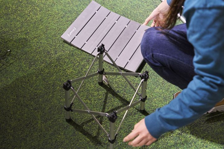 「コンパクトに収納できるのは大前提なのですが、コンパクトになるものだとテーブルとして組み立てたときに低すぎるものがあるんですよね。そうなると少し使いづらかったりするので、椅子の高さに合わせて使いやすいサイズ感のこちらがおすすめです」とアドバイスをもらいました。