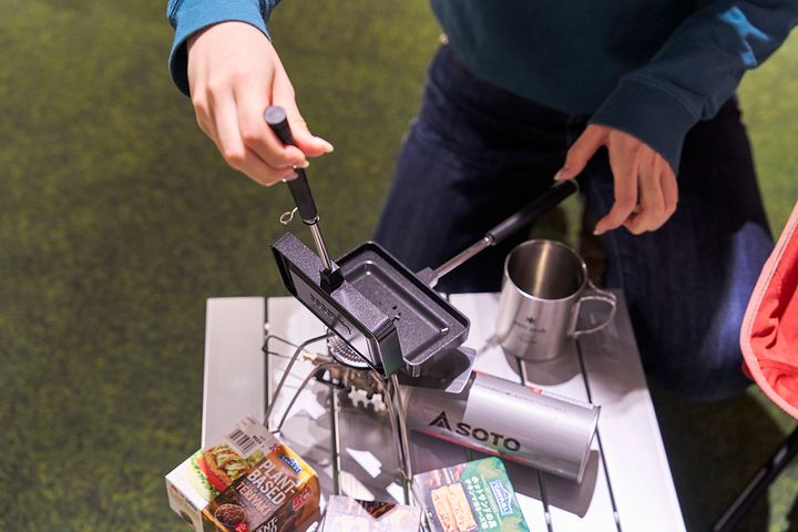 チェアリングに少し慣れてきたら、いわゆる「キャンプ飯」も楽しんでアウトドア気分をぐんと上げたいですよね。調理というとハードルが高そうですが、調理アイテムは意外とコンパクトなものが多いと聞いて、おすすめを教えてもらいました。それがこちらの「SOTO」の「レギュレーターストーブ Range」!