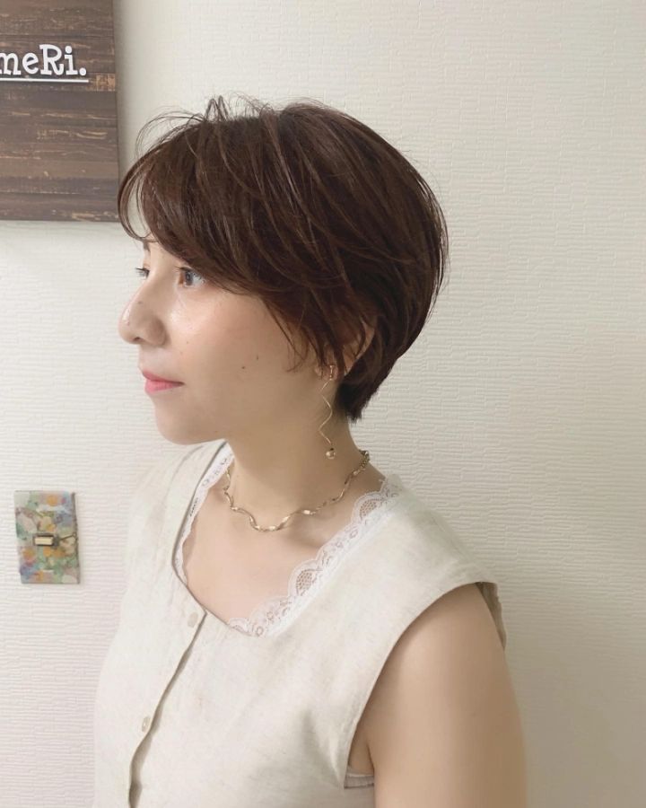 ボブやショートヘアの人にありがちな、厚めにカットされた重め前髪。重めの前髪は、40代50代と年を重ねると減ってくるトップのボリュームのなさを強調させ、おばちゃんヘアの印象を与える可能性があります。一見スタイリングがしやすい前髪に見えますが、髪全体のハリやコシが少なくなったことを強調させる場合があるので要注意。