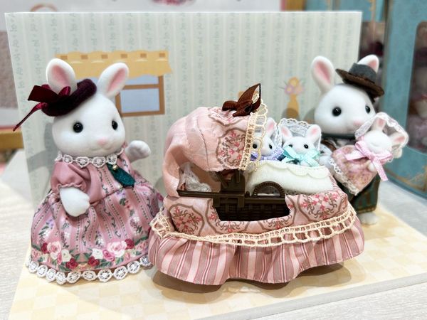 渋谷PARCOポップストアでの先行販売商品は、エレガントな洋服を着た「しろウサギファミリー」やリバティプリントでコーディネイトされた人形と家具がセットの「フローラルチャイルドルーム―リバティプリント―」、赤ちゃんのダイカットステッカーなど。限定ショッパーバッグは数量限定なので、もしかしたら先行販売で無くなってしまうかも。