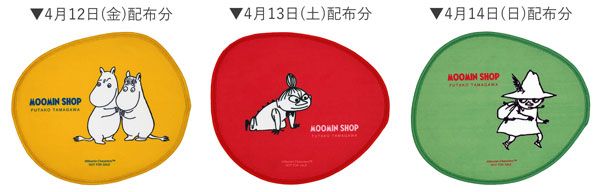 4月12日(金)~14日(日)の3日間、ムーミンショップ フタコタマガワで商品を税込5,500円以上購入すると、各日先着200人にオリジナルタオルハンカチをプレゼント。