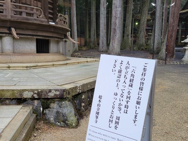 「六角経蔵(ろっかくきょうぞう)」は回せます。一回りすれば一切経をひと通り読誦した功徳が得るといわれています。