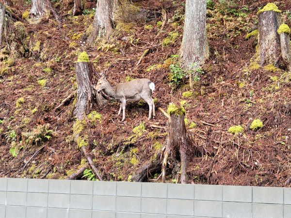 駐車場では、野生のシカに遭遇しました!
