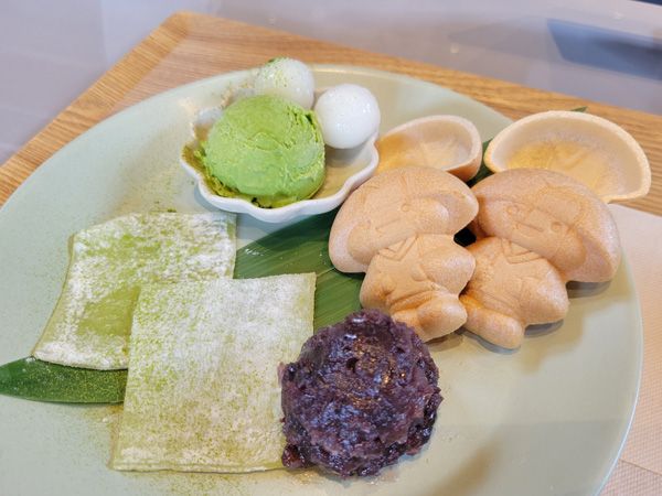 最中がサクサクで餡も抹茶アイスも求肥もたっぷり。かわいくて食べるのがもったいない…!