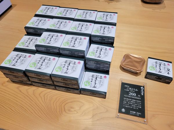 精進料理の代表格ともいえる「ごまとうふ」。物販のほか、「飲食部」にはカフェスペースもあります。