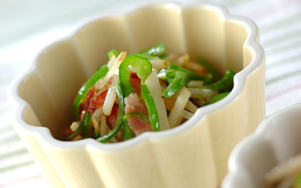 副菜やお弁当おかずに、新ジャガイモ・ピーマン・ベーコンの炒めものはいかがでしょうか。具材を順番に炒めたら、塩と粗びき黒コショウで味を調えればOK。簡単なので、忙しいときに覚えておくと便利です。