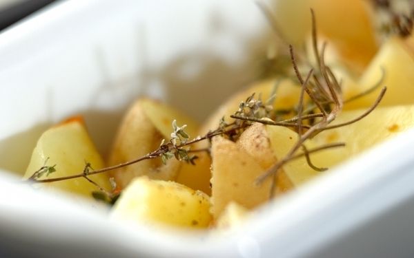 新ジャガイモのオーブン焼きはシンプルな美味しさを堪能できますよ。あらかじめレンジで加熱するため、焼き時間は10分程度。ハーブはドライよりも生がおすすめです。爽やかな香りを楽しみましょう。