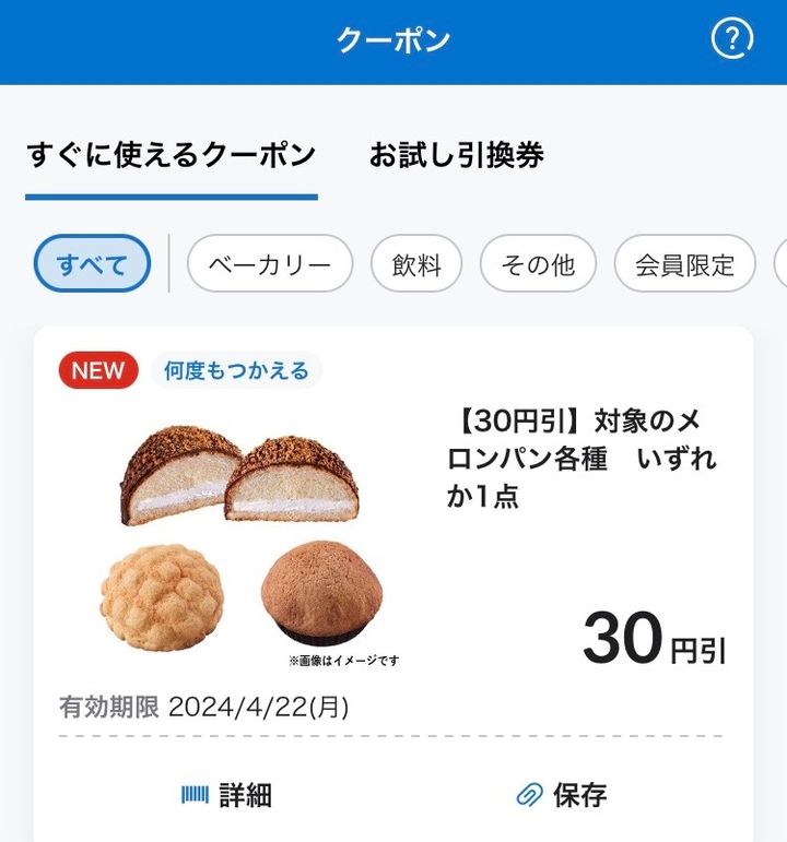 【注目】アプリのクーポンで「メロンパン」各種が30円引!