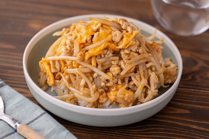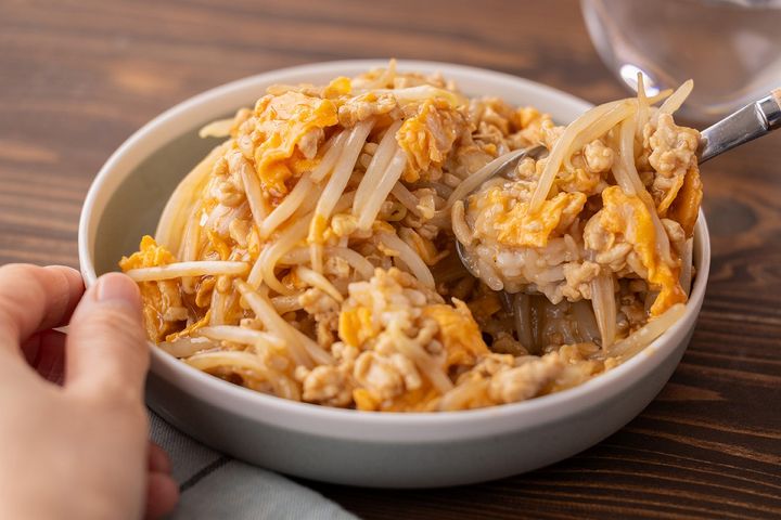 筋トレメニューにも!100円以下で作るボリューム満点節約ごはん「もやし玉子丼」