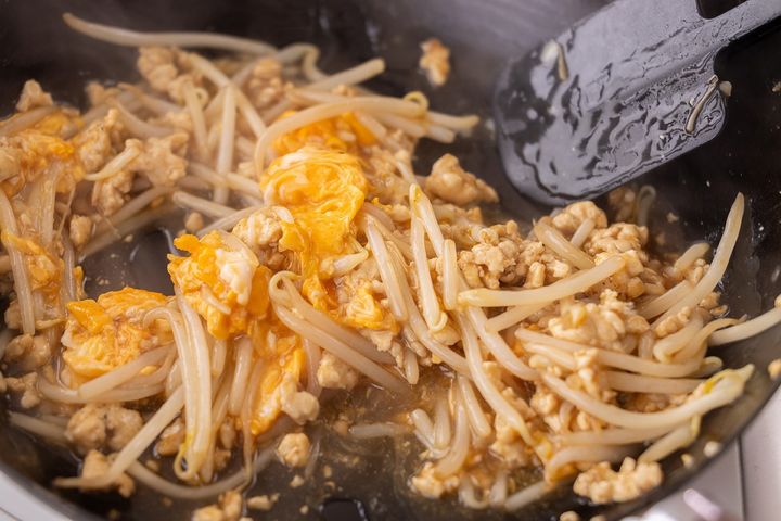 シャキシャキもやしととろとろ卵の食感が絶妙! オイスターソースでバッチリ決まった味付けがご飯と絡んでペロリと完食しちゃいます♪