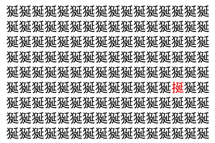 画像の中には、「狿」という漢字が縦に9行、横に16個並んでいます。 全部で144個となりますが・・・、そのうち1つは「異なる漢字」となってますよ!!