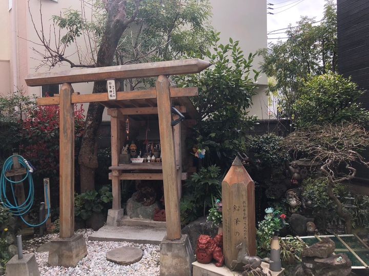 つづいて小さな神社へと移動します。こちらは短くなった鉛筆を供養する鉛筆神社です。