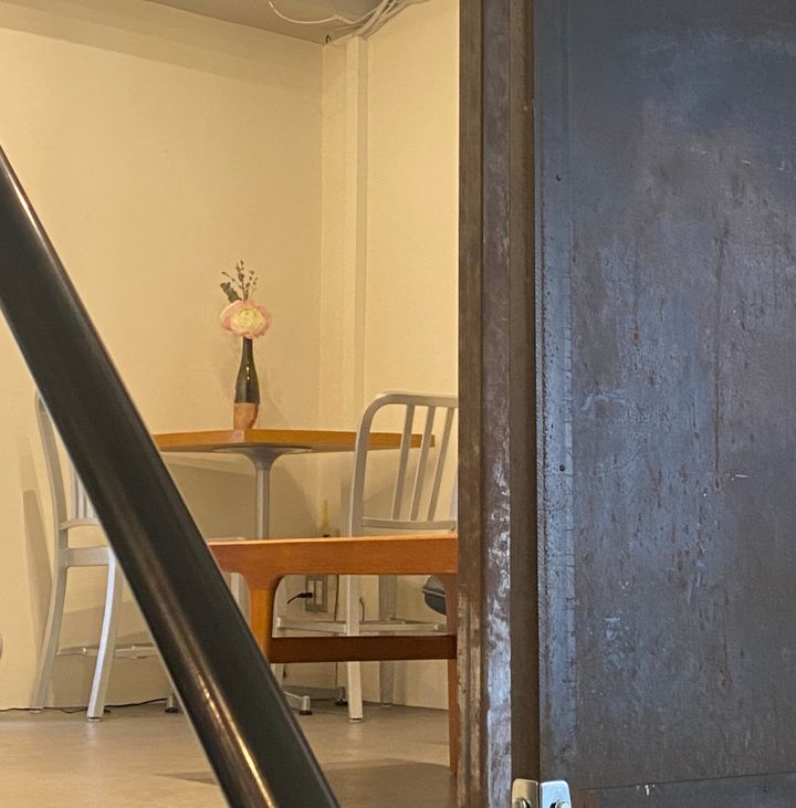 中に入ると、打ちっぱなしのシックで落ち着いた空間が迎えてくれます🛋