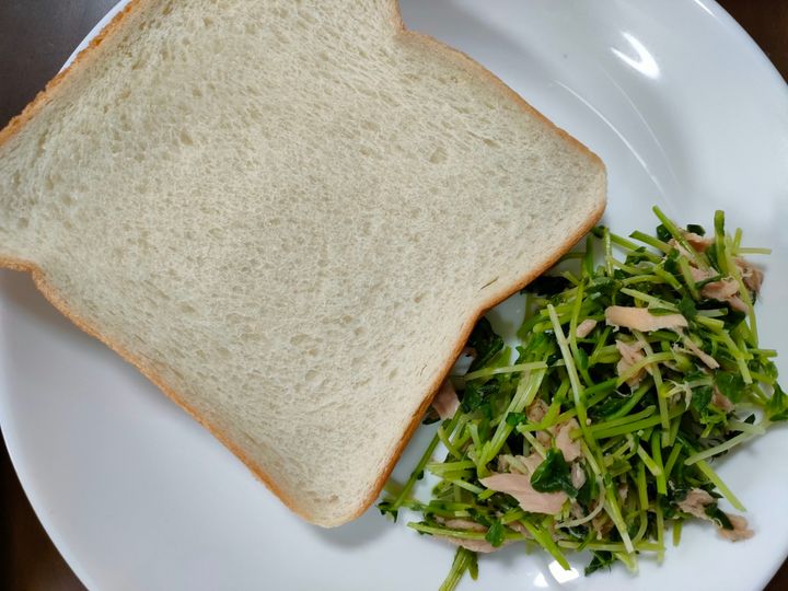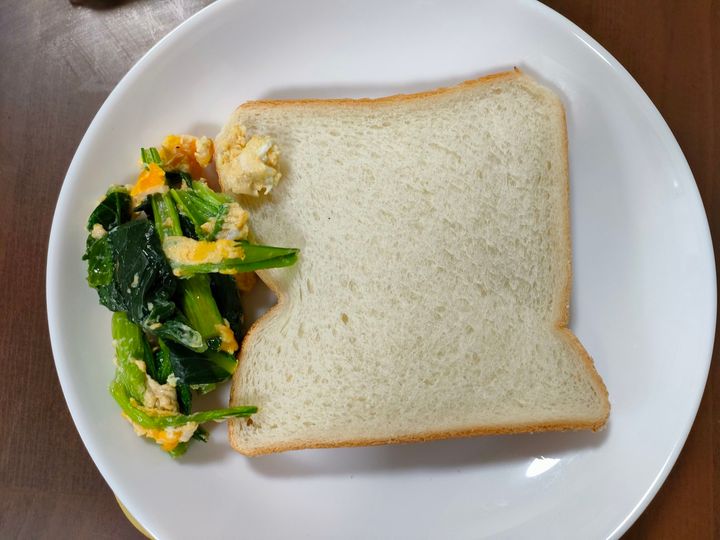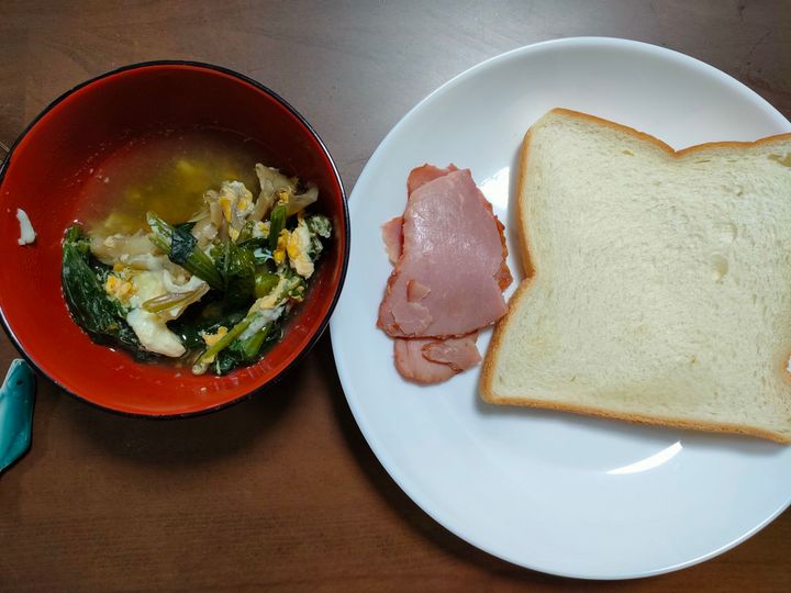 ・大人:食パン、ほうれんそうと舞茸の卵スープ、焼豚